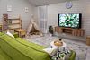 Дом «FlatPoint Оливковый» находится в живописном коттеджном поселке Грин Лаундж, предлагая идеальное сочетание уюта и современных удобств. Внутри дома гостей ждут комфортные условия: просторная спальня с двуспальной кроватью и двумя односпальными кроватями с ортопедическими матрасами. Дополнительные удобства включают два раскладных дивана, кондиционер, банные полотенца, набор косметических средств, тапочки, фен и кухонную технику — холодильник с морозильной камерой, кофемашину и посудомоечную машину.