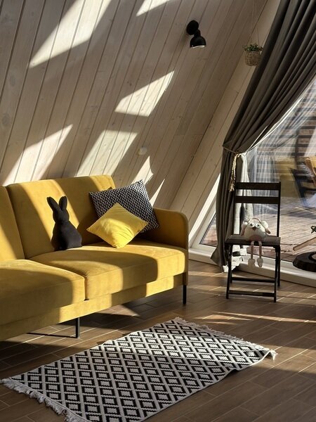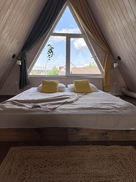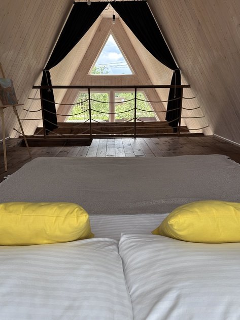 70 м2 · 2-х местный а-фрейм + 2 доп. места