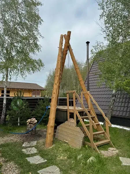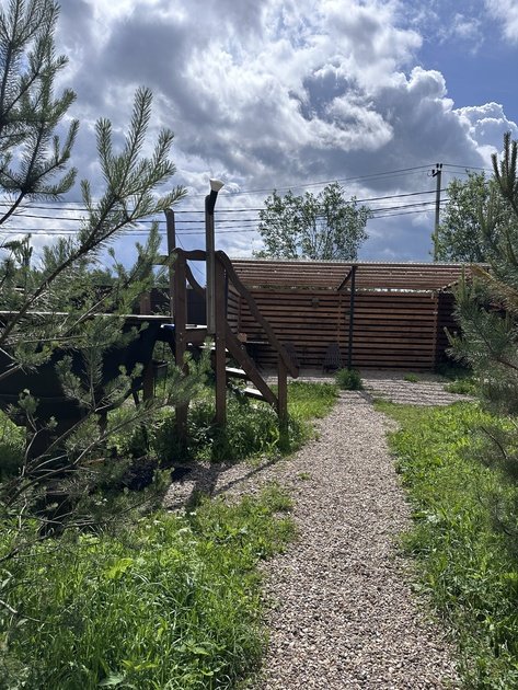 На территории два дома, отгорожены друг от друга плотным забором, у каждого дома свой банный чан, мангальная зона — приватно.