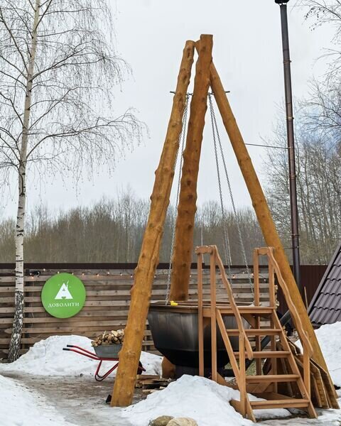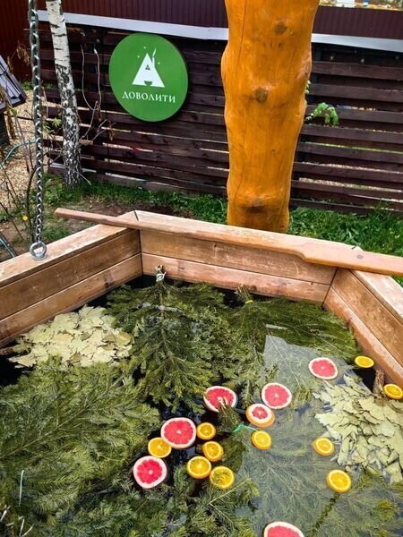 Но главная изюминка «Доволити» — это возможность насладиться традиционной русской баней и парением в сибирском банном чане под открытым небом. Вы самостоятельно растапливаете купель, следуя подробным инструкциям опытных сотрудников эко-дома, а также наполняете чан цитрусовыми и вениками.