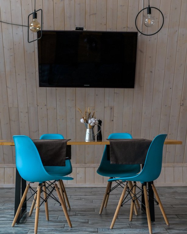 Большой обеденный стол на четыре-шесть человек — то, что надо для веселого праздника или уютного завтрака. Во дворе классная мангальная зона: большой мангал, уютная беседка, терраса с лежаками, шампура и решетка. Угли и розжиг гости привозят свои. В доме установлен кондиционер.