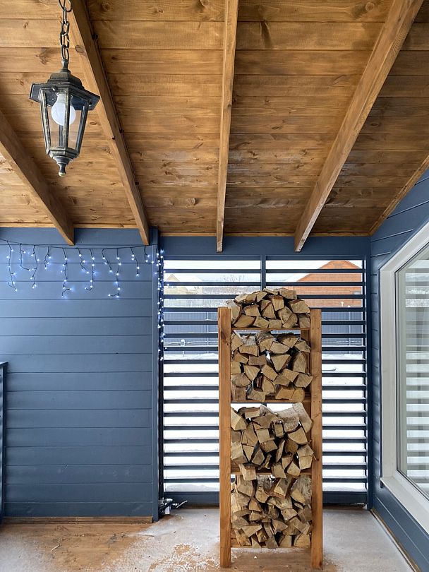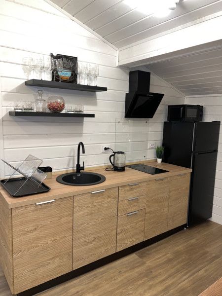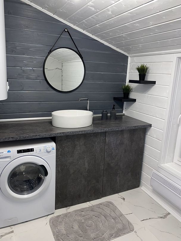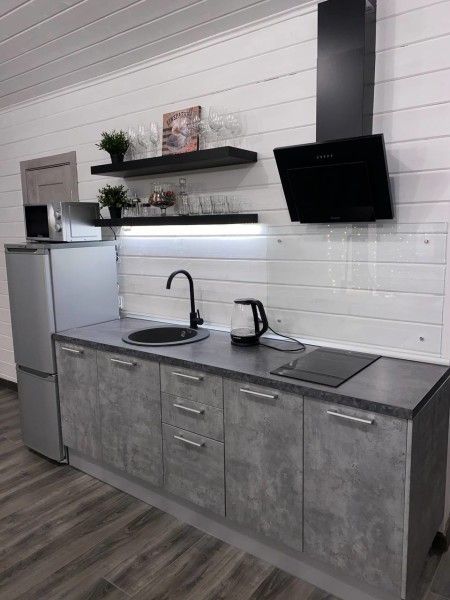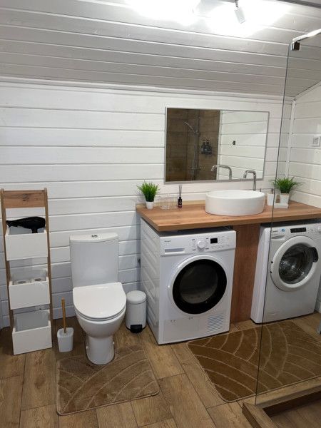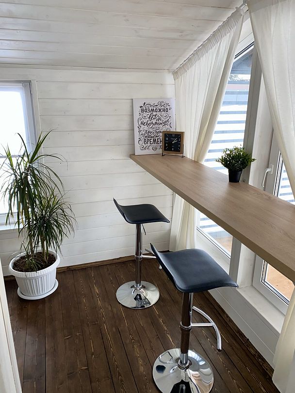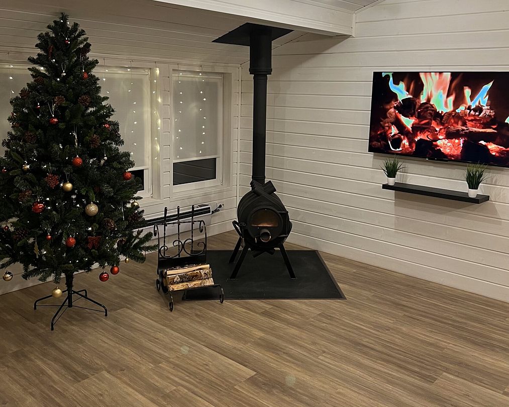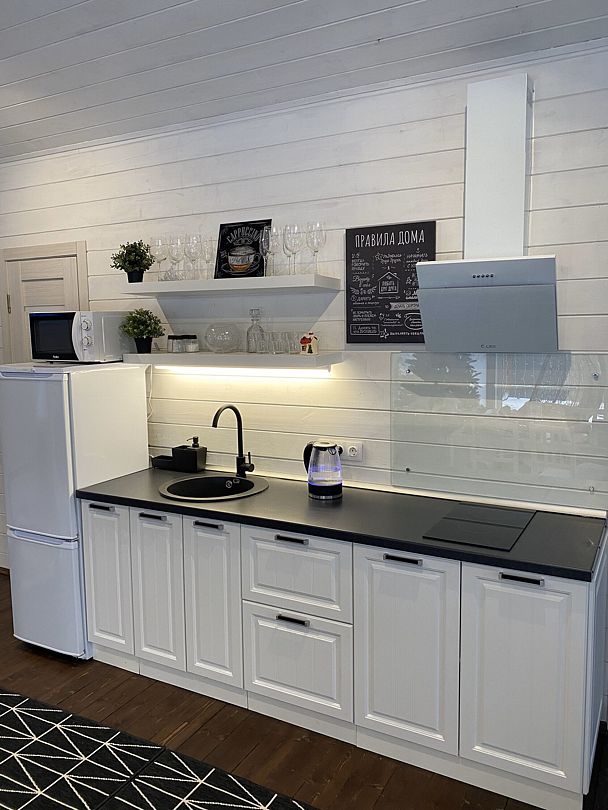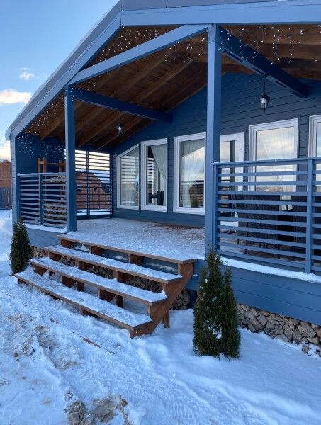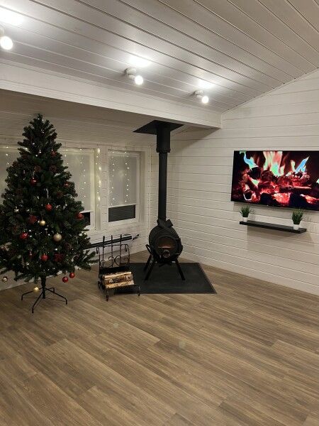 Во всем доме панорамные окна, полностью оборудованная кухня, WiFi, печь-камин (дрова — бесплатно), телевизор Smart TV, проектор, кондиционер, кабинет с рабочей зоной, санузел, сушильная и стиральная машина.