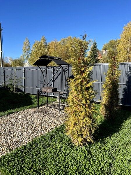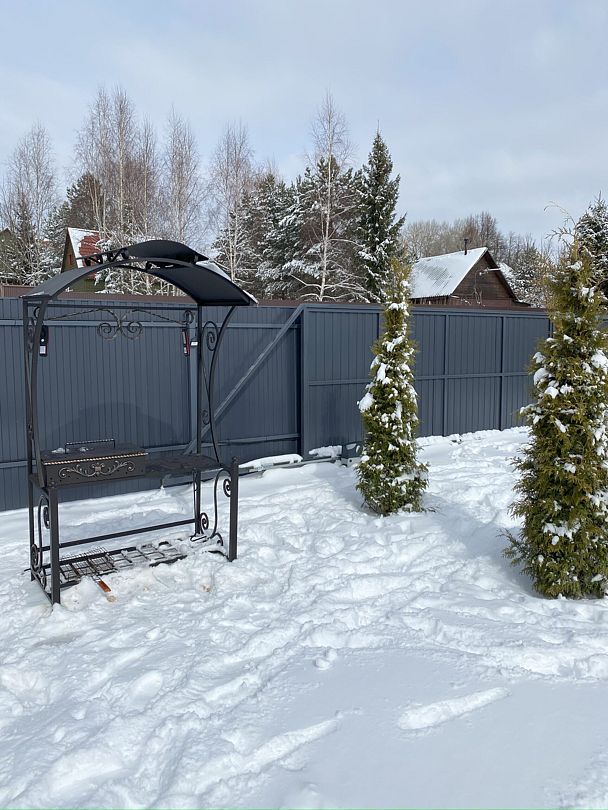 Веранда с садовой мебелью, мангальная зона (шампура и решетка гриль — бесплатно), парковка на три машины, батут, русская баня, прокат горных велосипедов. А также все необходимое для комфортной жизни.