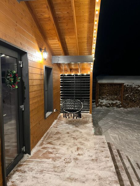 Во всем доме панорамные окна, полностью оборудованная кухня, WiFi, печь-камин (дрова предоставляем бесплатно), телевизор Smart TV, проектор, кондиционер, кабинет с рабочей зоной, санузел, сушильная и стиральная машины, веранда с садовой мебелью, мангальная зона (шампура и решетку гриль предоставляем бесплатно), парковка на три машины, батут, русская баня, прокат горных велосипедов. А также все необходимое для комфортной жизни.