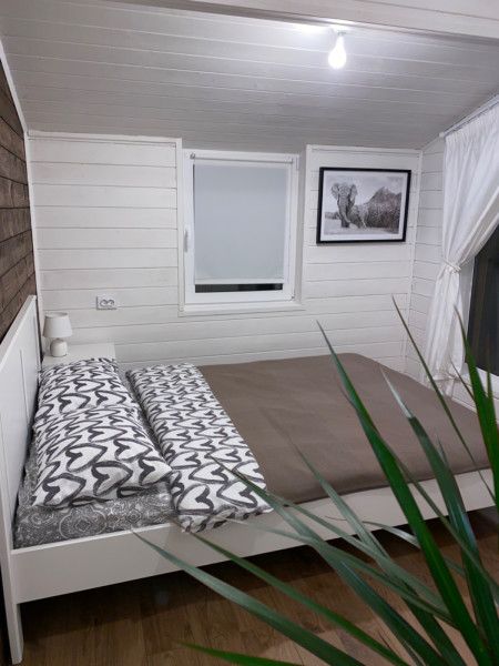 В доме имеются две отдельные спальные комнаты с двухспальными кроватями и детской кроваткой. В гостиной есть угловой раскладной диван.