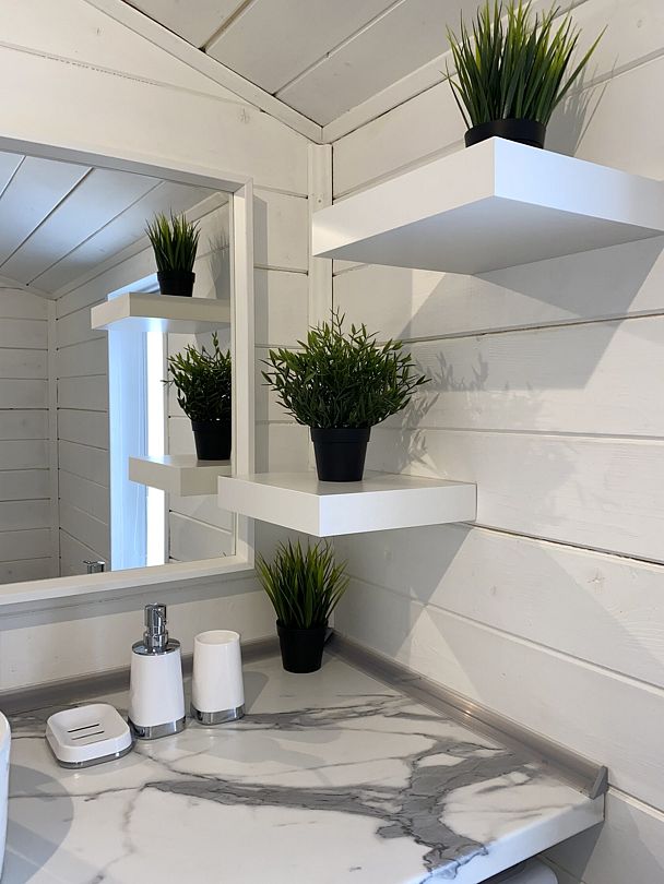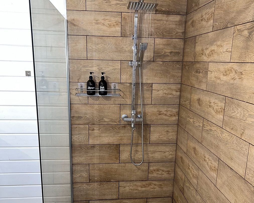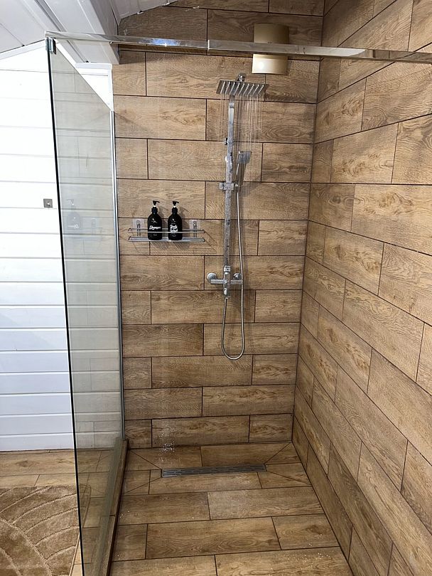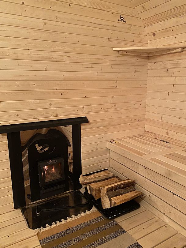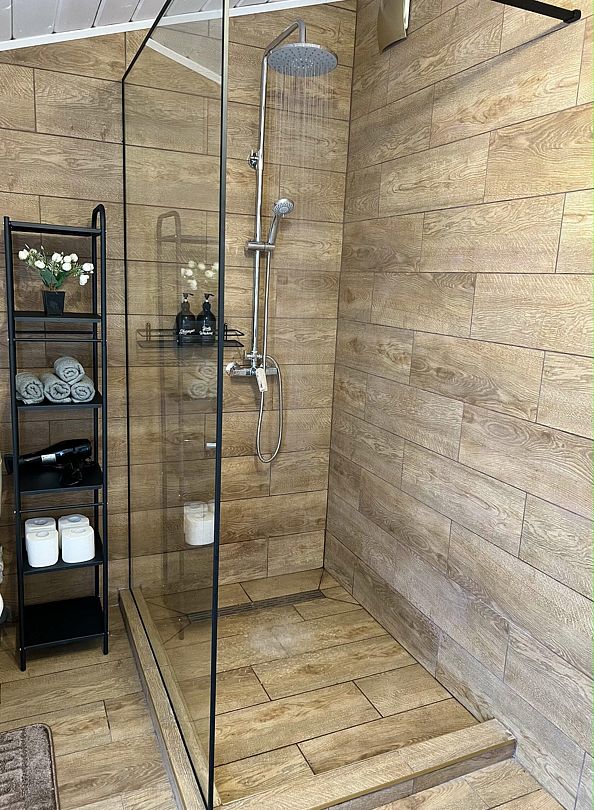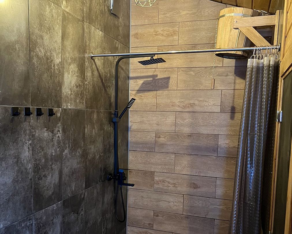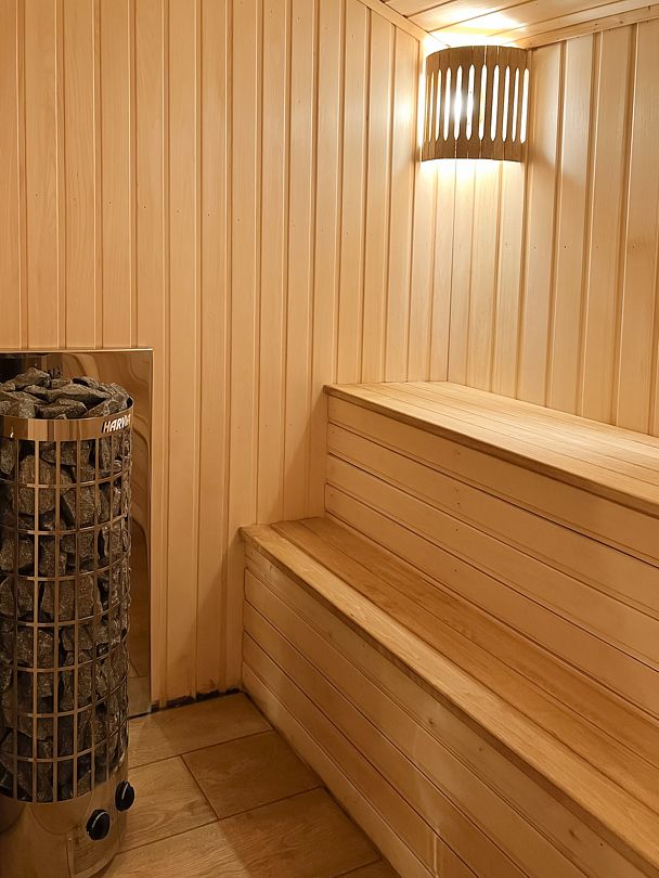 Сауна с комнатой отдыха и тропическим душем находится прямо внутри дома и оплачивается отдельно — 1500 ₽/час, минимум 2 часа.