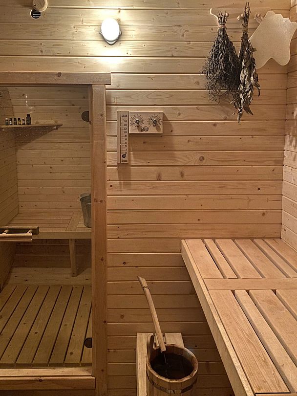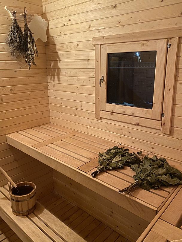 Русская баня оплачивается отдельно 2000 ₽/час, минимум 2 часа, также есть в наличии дубовые и березовые веники по 300 ₽.