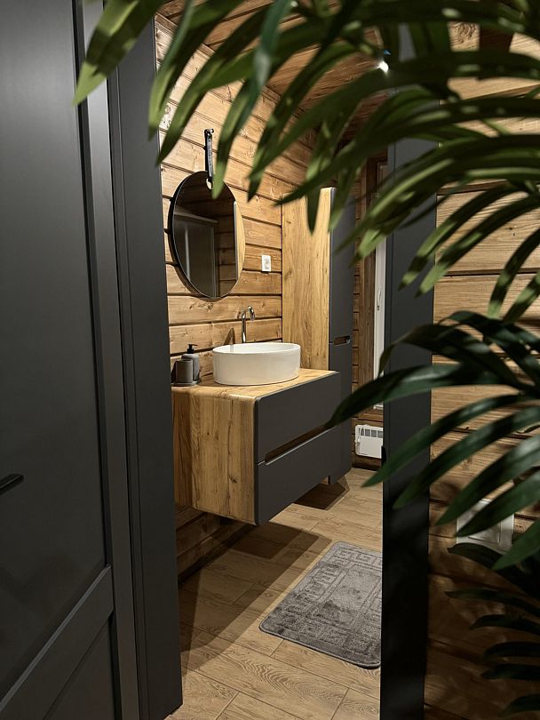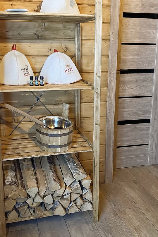 В доме с русской баней создана комфортная атмосфера для отдыха и восстановления сил. В вашем распоряжении парная зона с предбанником, а также уютная гостевая зона для чаепитий. Для парения имеются все необходимые принадлежности, включая аромамасла и веники.