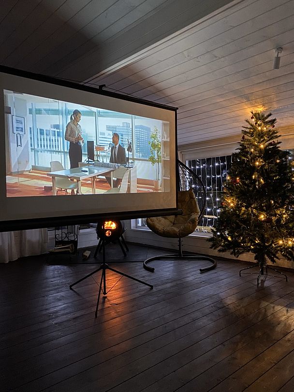 Для тех, кто предпочитает играть в компьютерные игры — в доме в стиле Дубльдом есть отдельная комната с игровой приставкой Sony PlayStation 4. Проектор в спальне позволит создать уникальную, романтическую атмосферу.