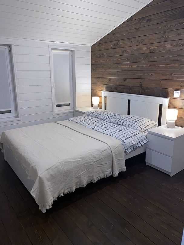 Дом с сауной-2 создан для того, чтобы вы смогли провести чудесные выходные с близкими или просто уединиться для работы или релакса. В доме с сауной-2 имеются две отдельные спальные комнаты с двухспальными кроватями и детской кроваткой.