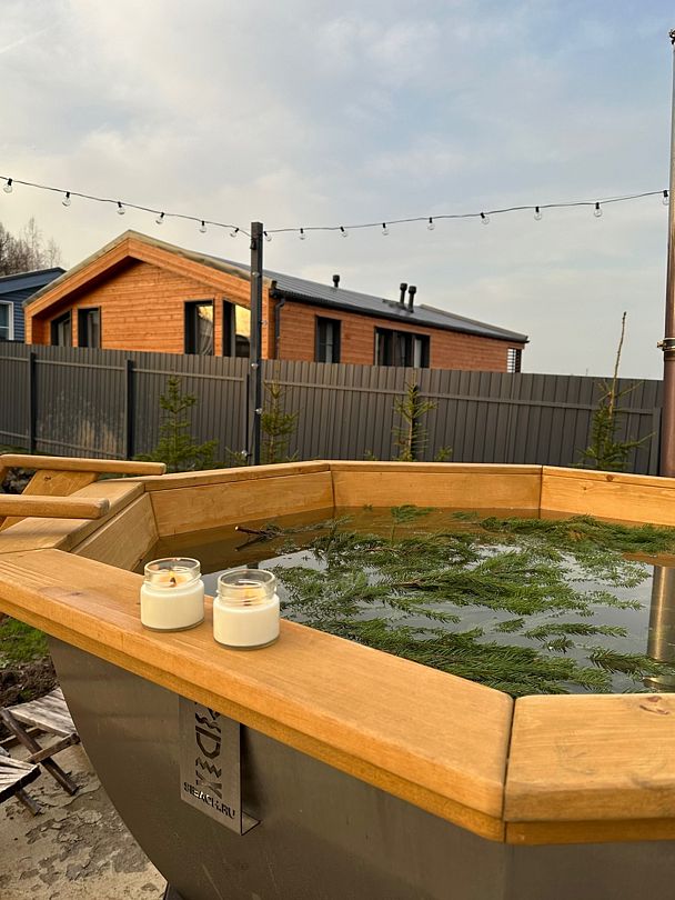 Есть возможность наполнить чан ароматными еловыми ветками, сухофруктами и эфирными маслами. Проведите время с пользой и получите истинное удовольствие от парения на свежем воздухе.