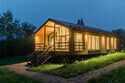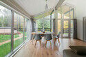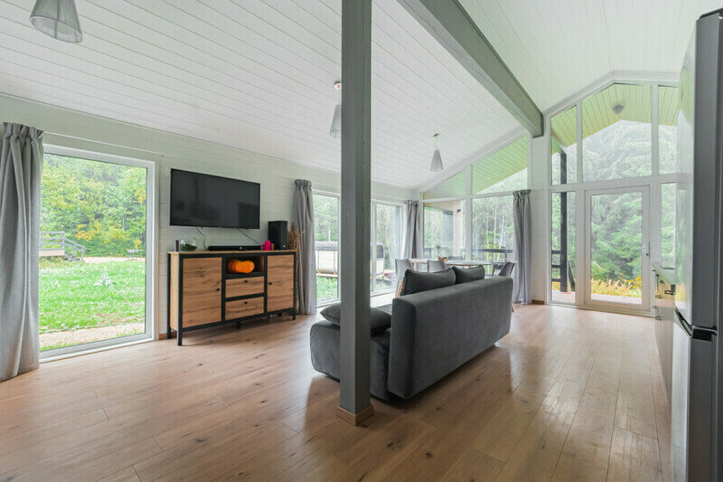 Коттедж с панорамными окнами с видом на Хвойный лес.