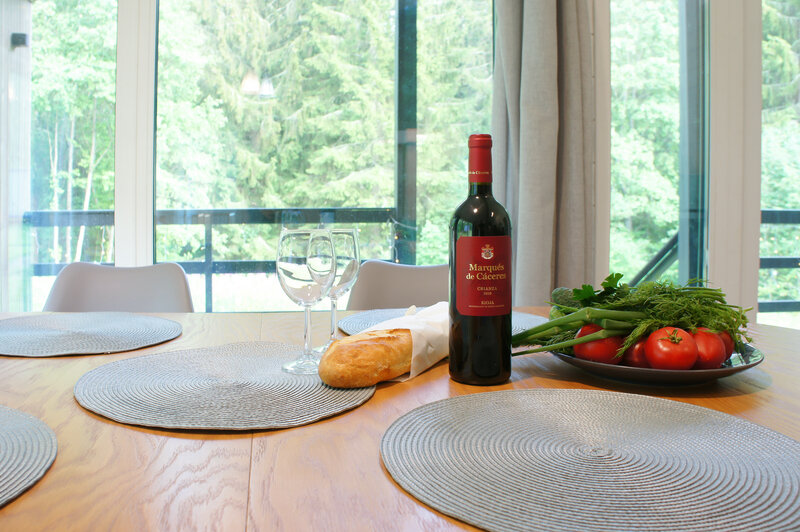 Дом построен в 2022 году, новая мебель и техника, стильный дизайн и красивые виды на лес из всех комнат через панорамные окна.