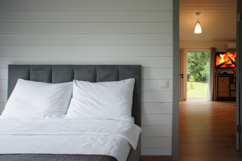В доме две спальни с двуспальными кроватями, гостиная с раскладным диваном на двоих, полностью оборудованная кухня, 1 санузел с душевой кабиной. В холодную пору в доме комфортно благодаря полам с подогревом.