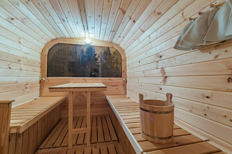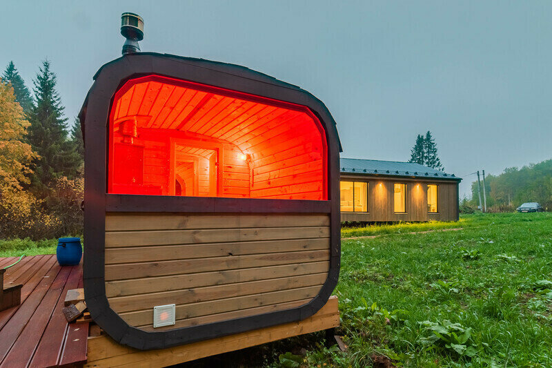 Гостям дома №1 соснового леса рады предложить сауну с панорамным окном на террасе у дома.