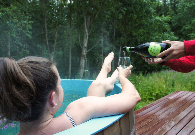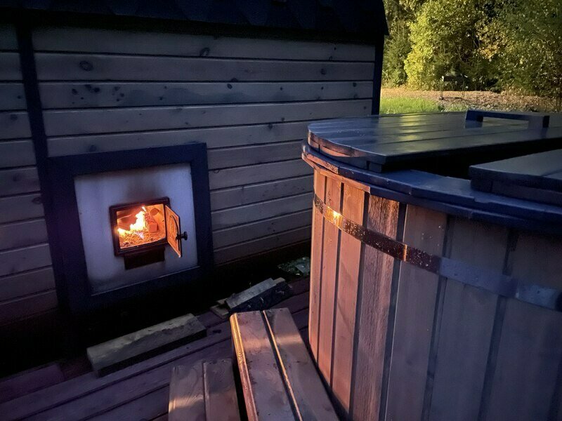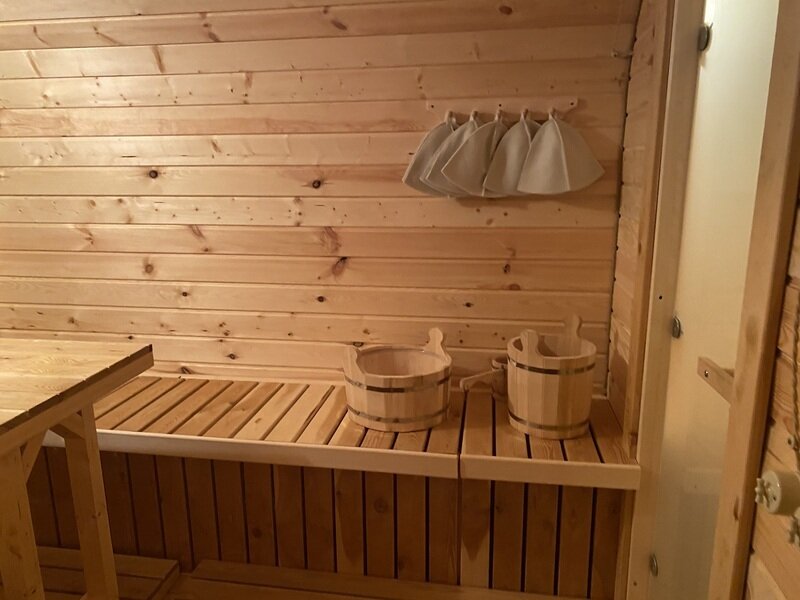 Для гостей обоих домов доступна баня и большая купель на общей территории. Купель наполняется тёплой водой. По запросу могут набрать холодную воду для сочетания с горячими банными процедурами.
