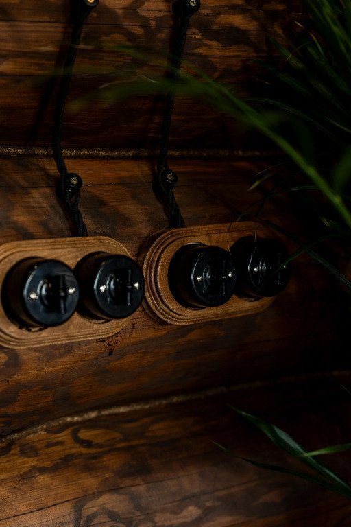 В темном доме множество темных акцентов в интерьере, темные цвета прослеживаются в посуде, белье и прочем.