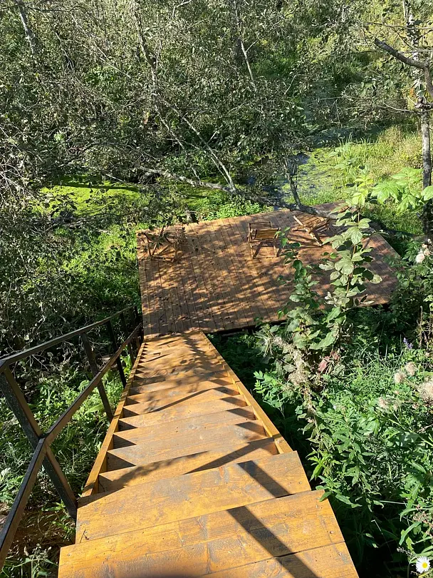 Удобное расположение домов вблизи леса и реки создает идеальные условия для романтического и семейного отдыха.