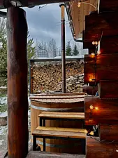 В чане можно понежиться в тёплой воде под открытым небом. Доступны различные добавки.