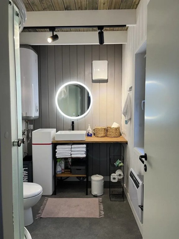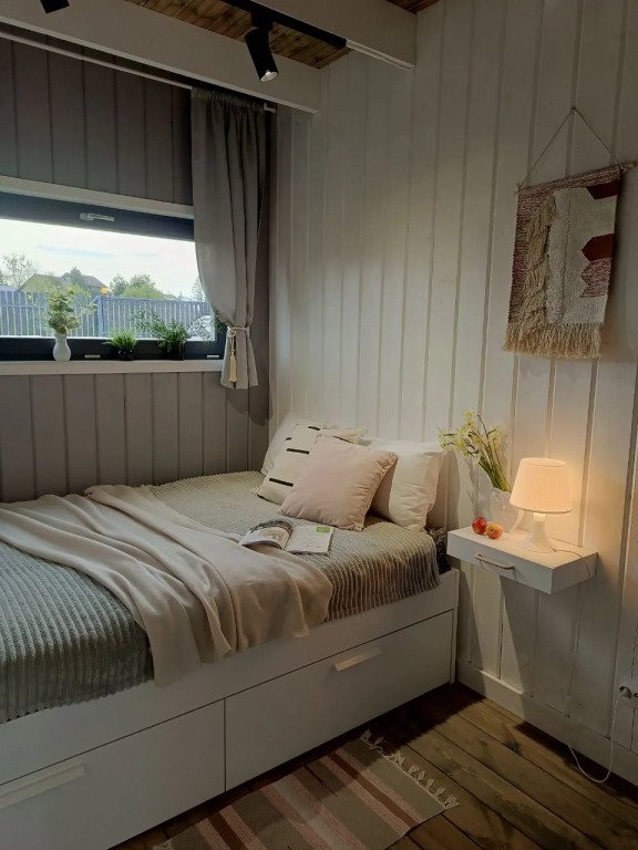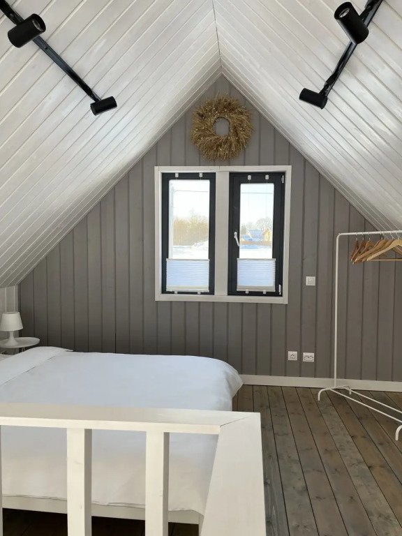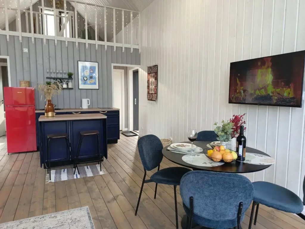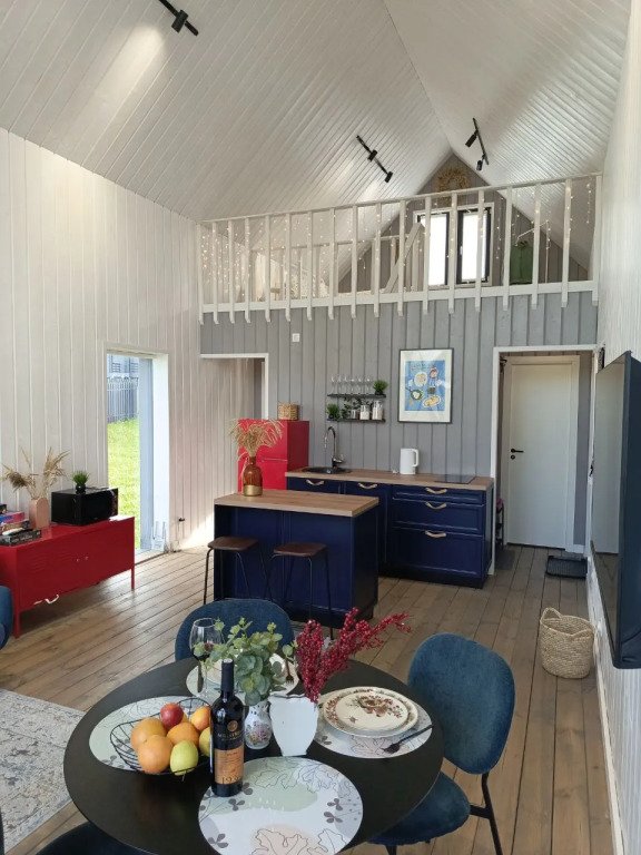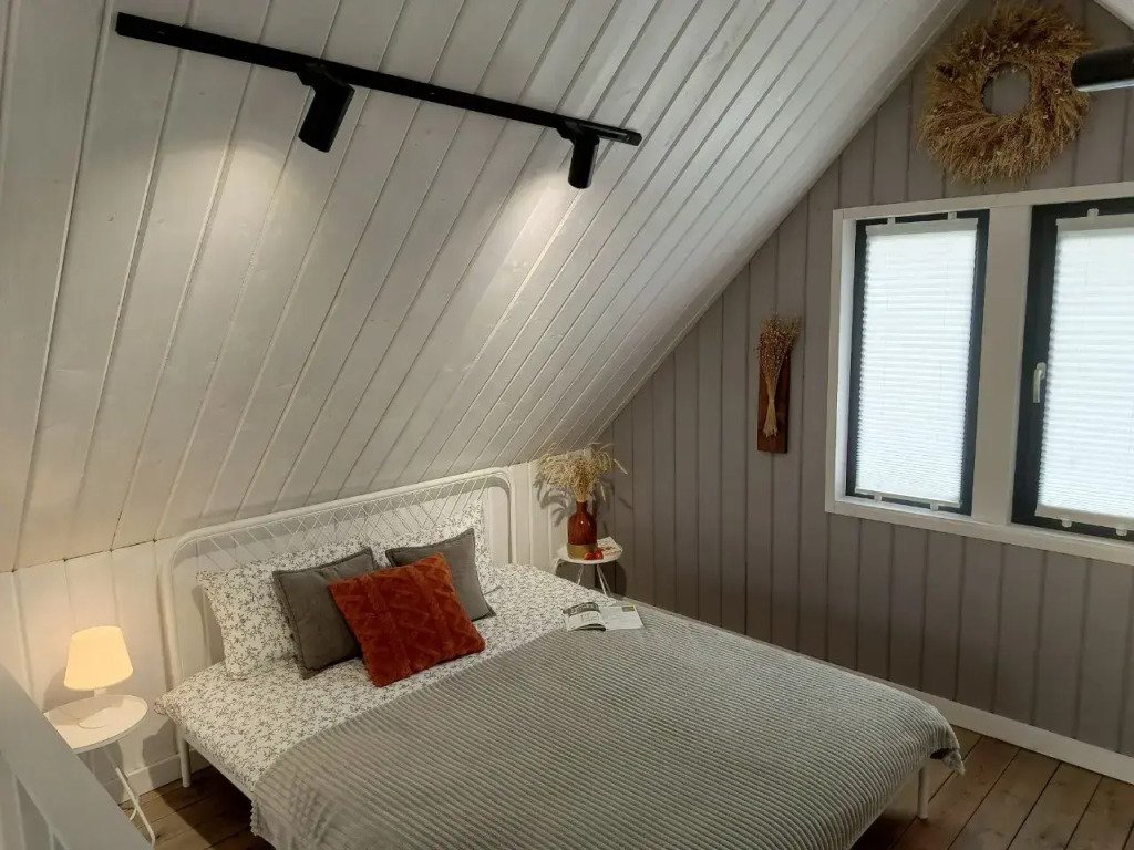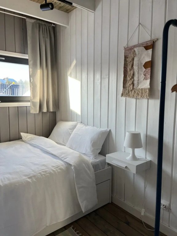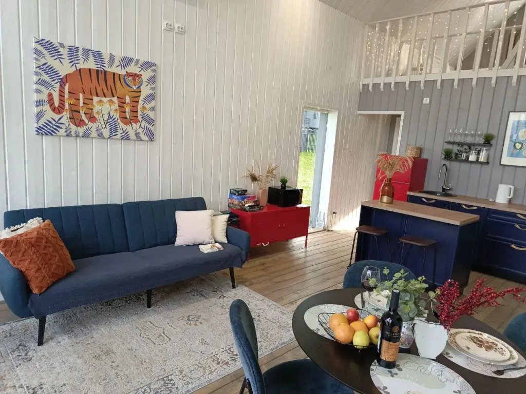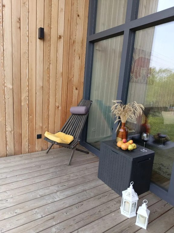 В доме есть две отдельных спальни с двуспальными кроватями, оборудованная кухня с посудомоечной машиной, садовая мебель, кресла-релакс, диван в гостиной, телевизор со Smart TV. Летом гости могут взять сапы, купаться и загорать.