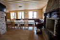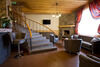 На первом этаже второго здания находятся гостиная с камином, кухня, телевизор, музыкальный центр, мягкие кресла, угловой диван, обеденный стол, санузел, ванная, на веранде барбекю. На втором этаже четыре спальни, два санузла. Комфортное размещение 14 человек, максимальное 21 человек.