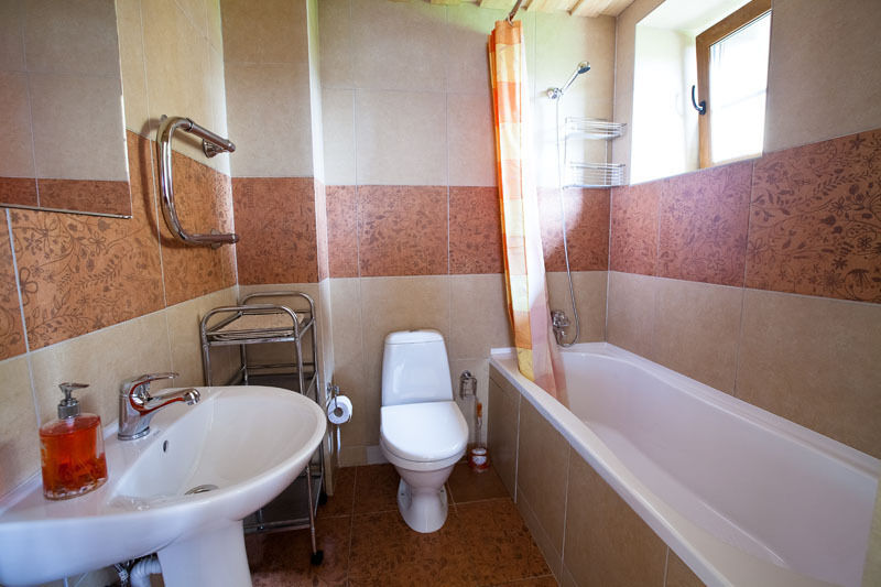 На первом этаже первого здания находятся русская баня на дровах, бассейн, кухня, обеденный стол, телевизор, музыкальный центр, санузел. На втором этаже бильярд, телевизор, DVD караоке, три спальни, два санузла с ванной.