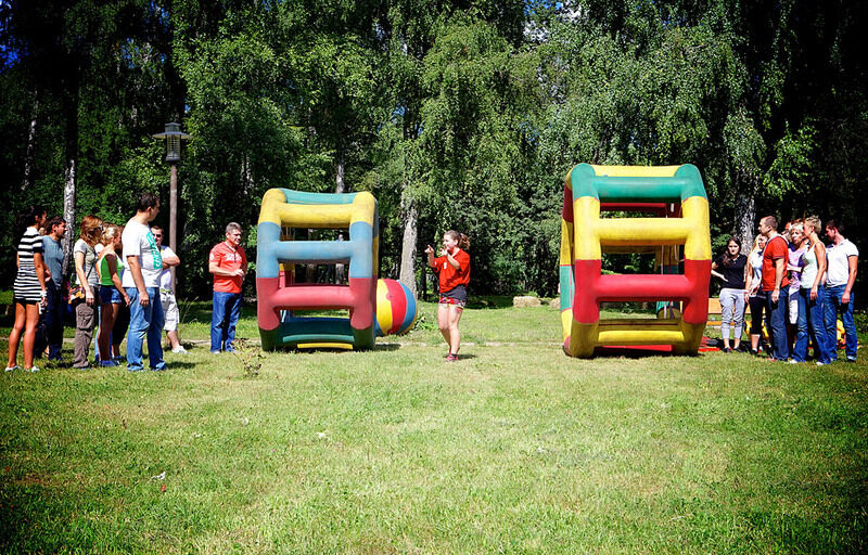Для гостей базы отдыха проводят корпоративные выезды и организовывают тимбилдинги (team building) на природе. Игры на командообразование имеют огромную популярность, потому что совмещают в себе активный отдых и укрепление корпоративного духа коллектива. Сценарии тимбилдинга позволяют проводить соревнования и конкурсы не только на суше, но и на воде. Для этого на площадке базы для тимбилдинга есть прибрежная поляна для сухопутных игр, песочный пляж, лодки и катамараны для водных эстафет и развлечений.