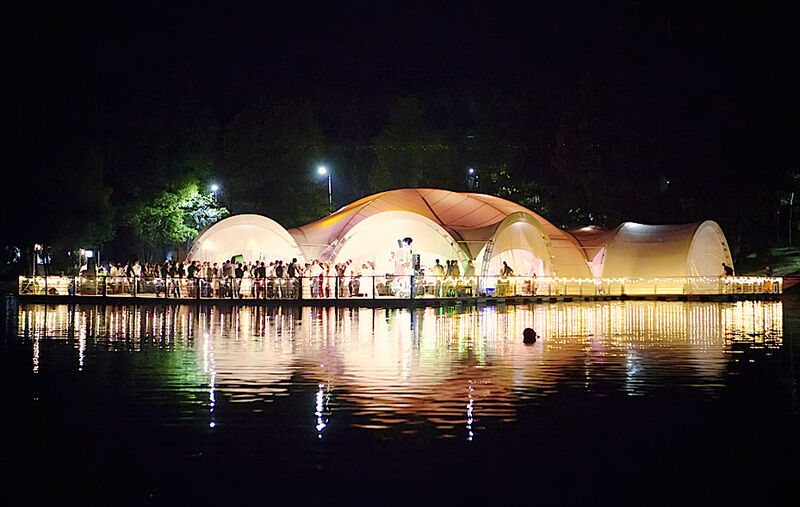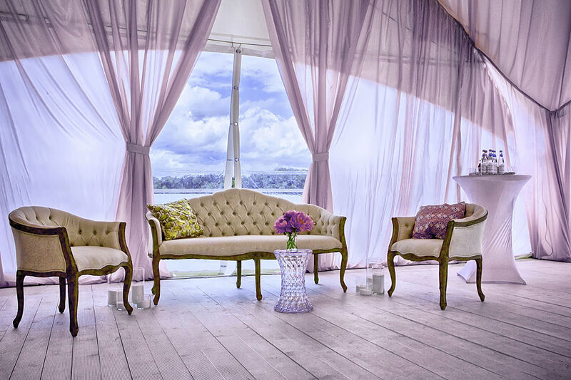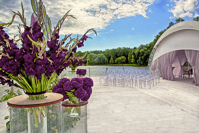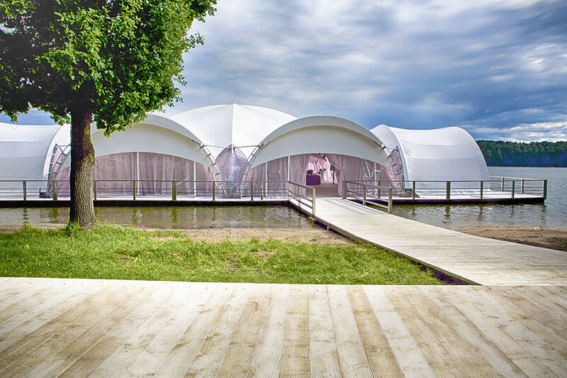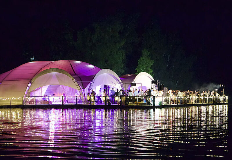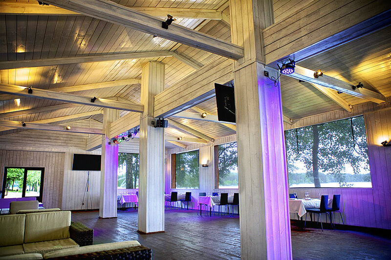 Вместимость шатра — до 250 персон при комфортной рассадке! 500 кв.м торжества в шатре на причале с потрясающим видом на водный фотопейзаж! Гости могут арендовать банкетный ресторан или шатёр у воды, в котором есть отдельная гримёрная зона для артистов и собственное помещение под кейтеринг. Основной зал ресторана, рассчитанный на 80 персон оборудован современным комплектом звуковой и световой аппаратуры, с возможностью трансляции видео на телеэкраны, а праздничное меню удивит всех разнообразием блюд!