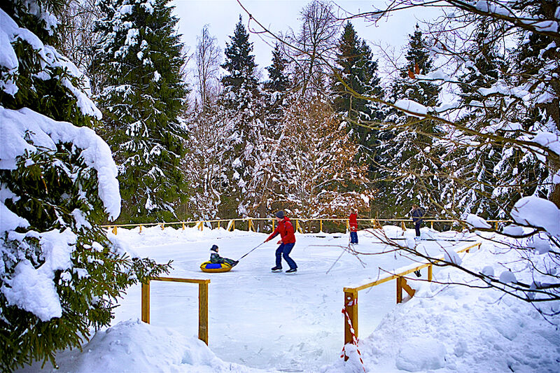 600 кв. м ровного льда для катания и 100 кв.м пространства для обучения малышей ждут гостей! Для проживающих на базе отдыха работает бесплатный прокат коньков. Зона отдыха оборудована удобными лавочками для чаепития и переодевания. По периметру каток оснащен удобным барьером для поддержки начинающих. В ночное время лёд романтично подсвечен и поэтому безопасен и красив!
