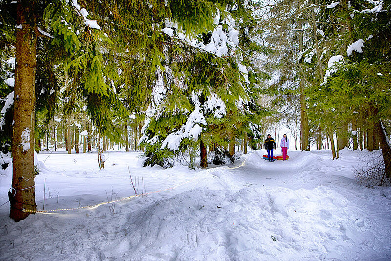 Читать полностью150 метров веселого спуска на тюбинге «ватрушке» превратят Вас в ребенка и вернут ощущение детства! Горка обустроена безопасными снежными барьерами и эффектной подсветкой, поэтому кручение тюбинга на трассе будет не опасным и футуристичным. Большая горка имеет хороший уверенный разгон, а спуск пролегает между огромными красивыми елями и соснами, добавляя и без того радостным эмоциям природную эйфорию. «Ватрушки» или «тюбы» предоставляются бесплатно гостям, поживающим на базе отдыха.