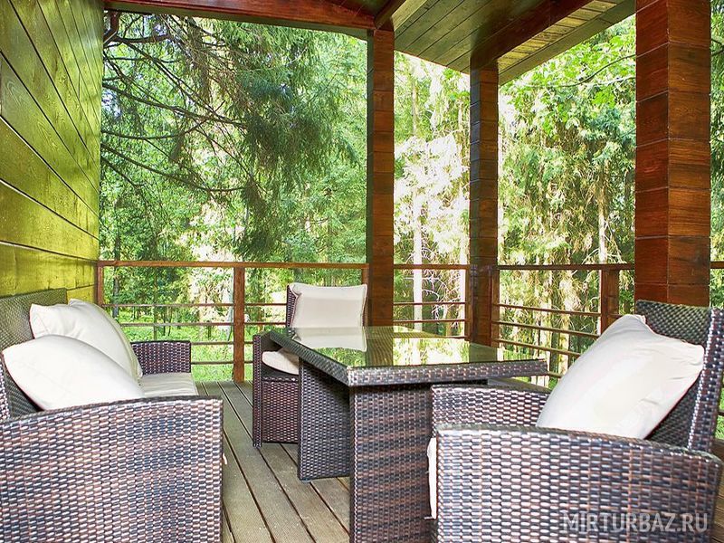 - терраса 20 м/кв с ротанговой мебелью и пледами
