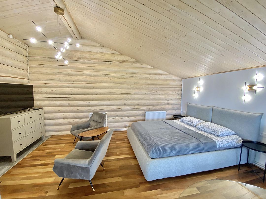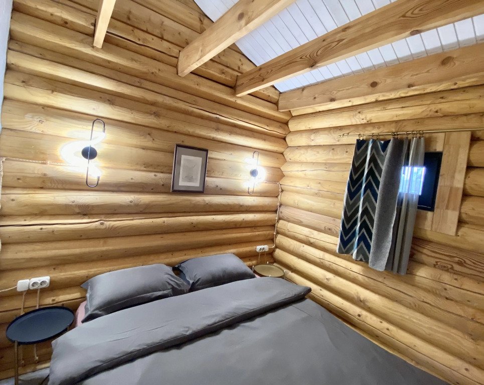 Спальня в домике обеспечит вам спокойный и комфортный сон. Она оформлена с любовью к деталям с удобной кроватью и мягким постельным бельем. Вы сможете проснуться отдохнувшими и полными энергии для нового дня.