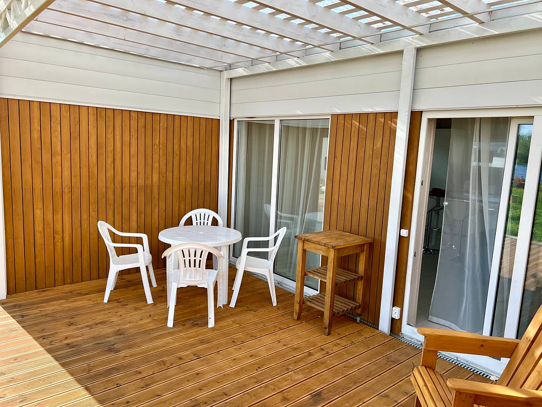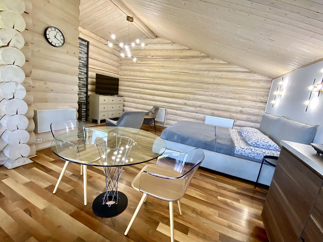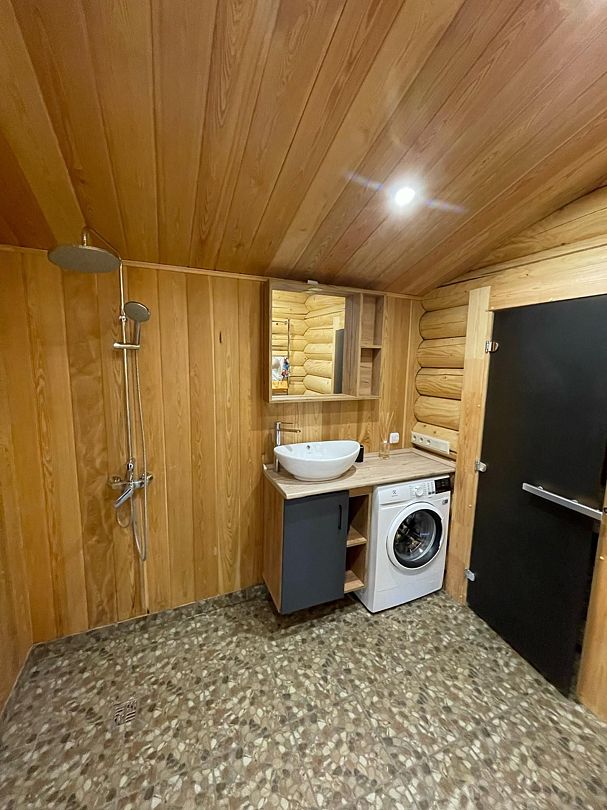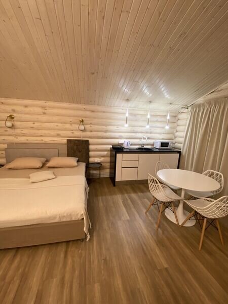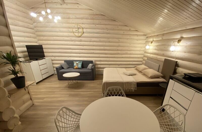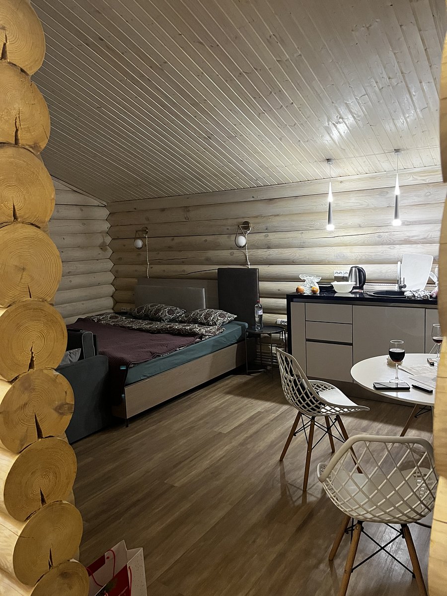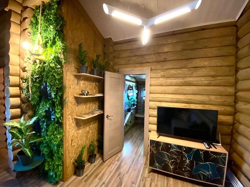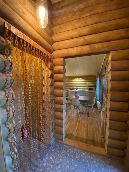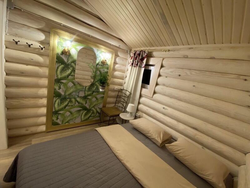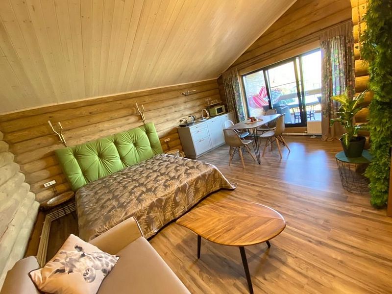Домик выполнен из натурального дерева и полностью оборудован для комфортного проживания. В нем есть все необходимое для вашего отдыха: