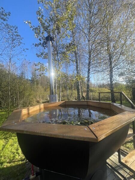 Уральский банный чан на дровах: процесс парения осуществляется в металлическом чане, наполненным водой, которая прогревается над огнем до температуры 40 градусов. как правило в воду добавляют полезные травы, ароматную соль.( предоставляем за отдельную оплату). Чан можно использовать в любое время года на открытом воздухе. Парение в чане полноценная SPA-процедура, которая благотворно воздействует на дыхательную, эндокринную, нервную и сердечно-сосудистую системы.
