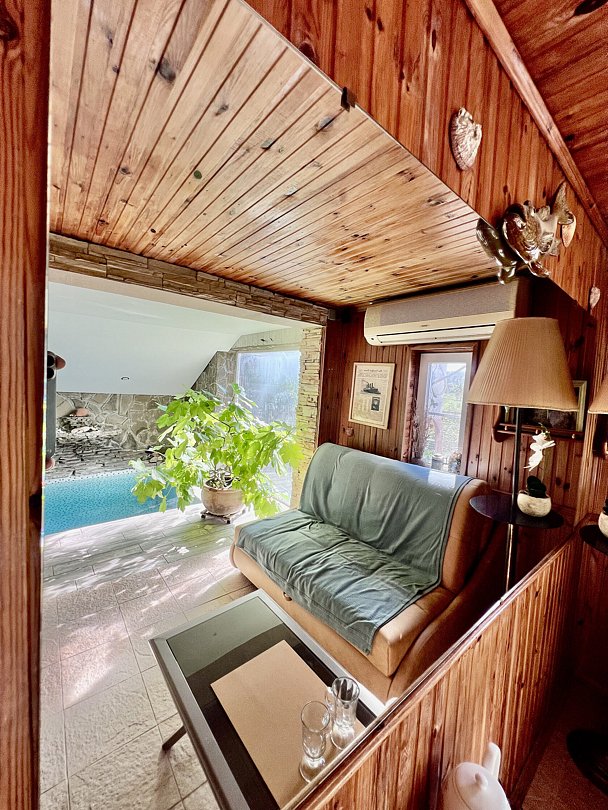 Это небольшое уютное помещение, где можно прочувствовать тепло, аромат древесины и масел, но баня это не только купель и парная, в ней также есть уютная зона отдыха, где можно расслабиться после парной и выпить чашечку чая с ароматными травами.