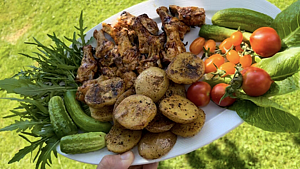 Рядом с бунгало на холме есть летняя кухня с бытовой техникой и посудой, для любителей шашлыка и блюд на гриле, есть мангальная зона.