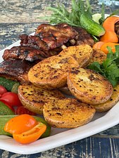 Вам могут приготовить фирменное блюдо — свиные рёбрышки в соусе «чёрный перец», с жареной картошкой, специями и сезонными овощами.