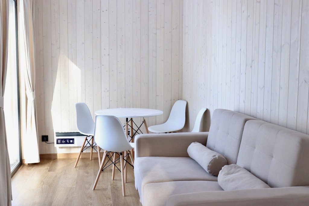 Большой комфортный дом с одной отдельной спальней, собственным сан узлом, кухней, обеденной и гостиной зоной с диваном-трансформером.