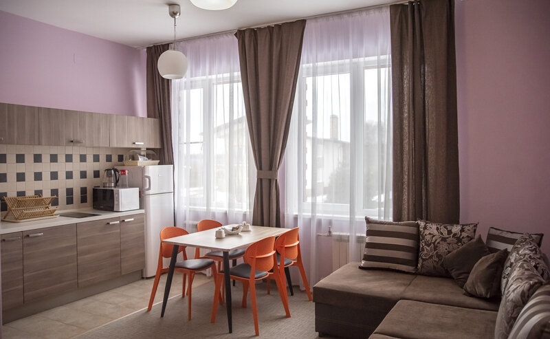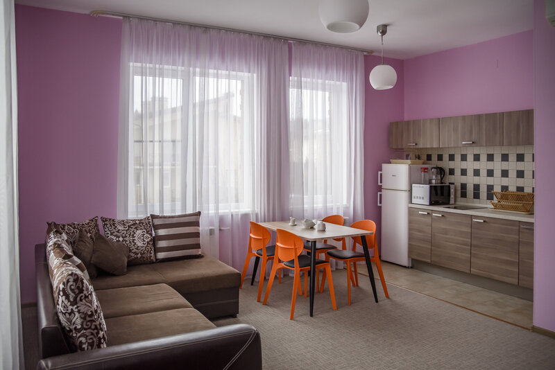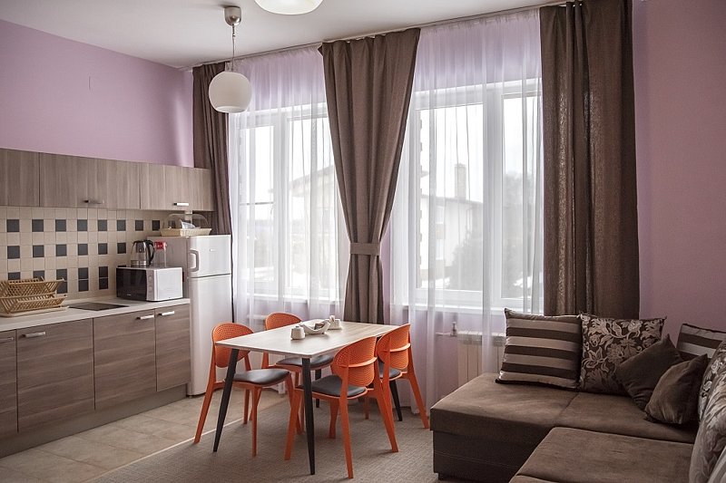 Апартаменты — это большой комфортабельный номер, состоящий из 2-х комнат: отдельная спальная комната и гостиная с кухонной зоной.
