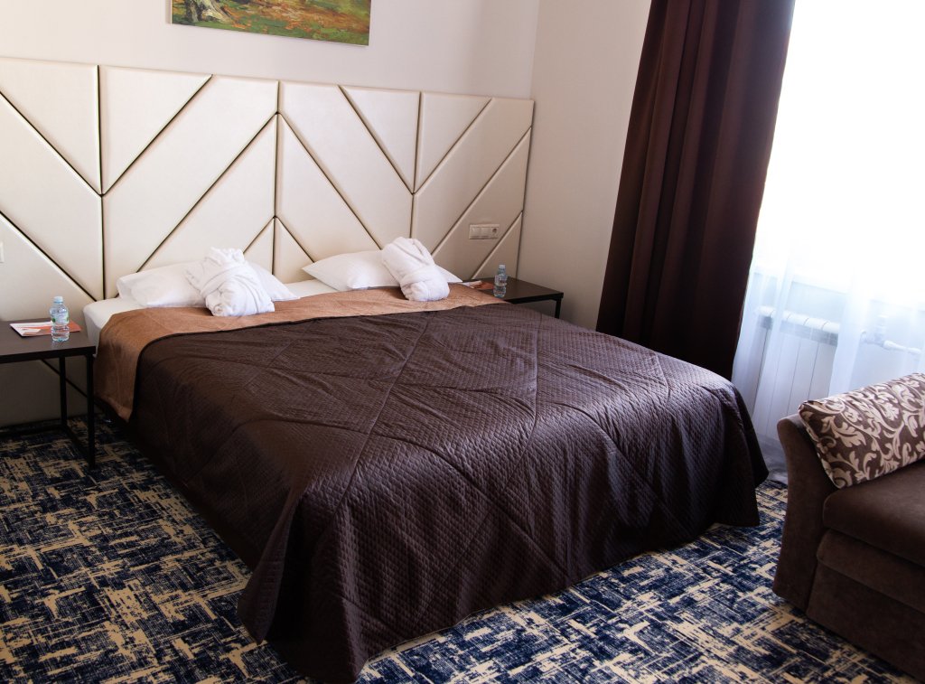 Standart DBL— это большой, комфортабельный номер (31 кв. м.) c одной двуспальной кроватью. При желании гостя можно разъединить.