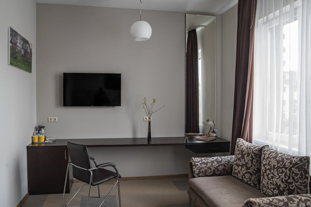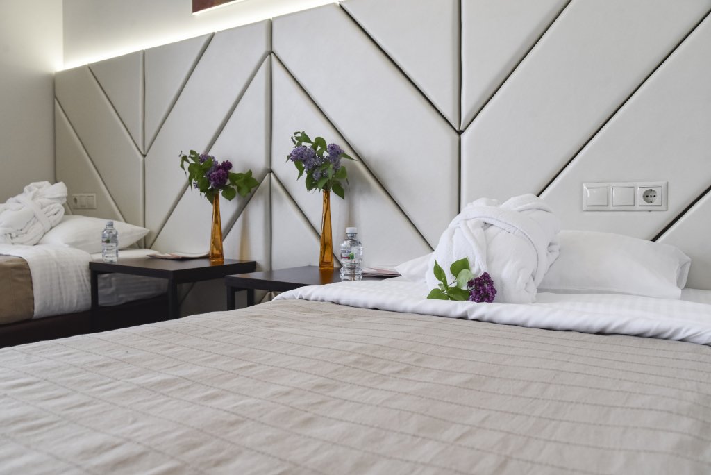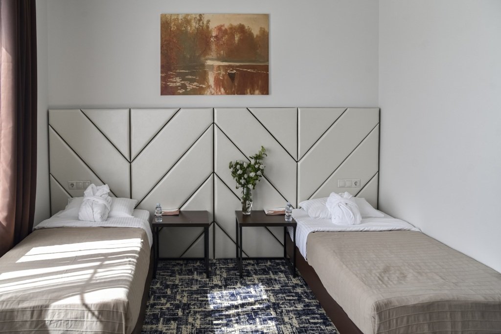 Standart TWIN— это большой, комфортабельный номер (32 кв. м.) c двумя раздельными кроватями. Возможно сдвинуть кровати при желании гостя.