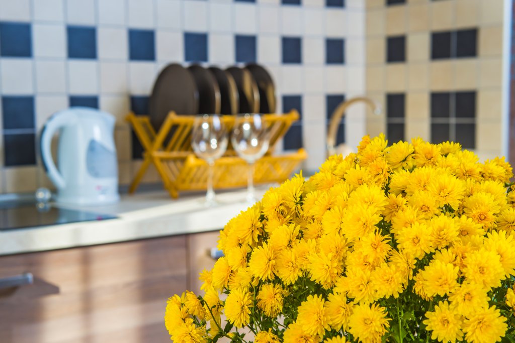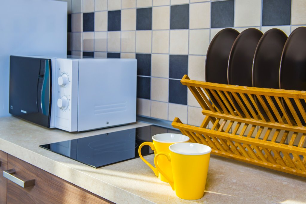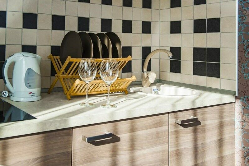 • кухонный уголок оборудованный плитой, СВЧ и набором столовой и кухонной посудой;