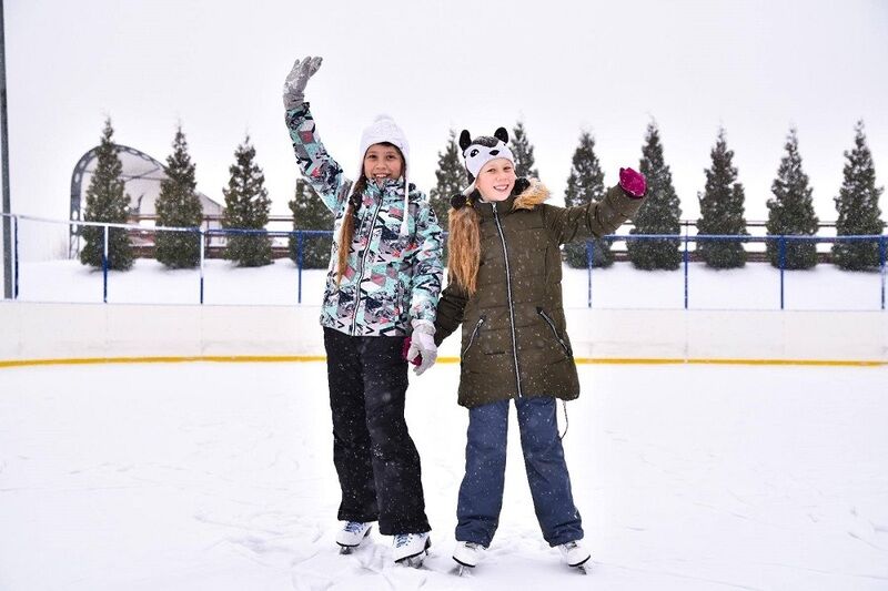 Территория отеля огромная. Каждый уголок убирается постоянно, хоть и снега было много. Каток безукоризненно ровный, сверкающий. Всё для нас – музыкальное сопровождение, вечерняя подсветка.