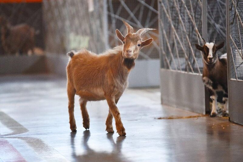 Пока идёте до катка Вас сопровождает контактный зоопарк на улице. Это и лисичка, и филин, и гуси, фазаны, бараны и козлы. Можно и нужно заглянуть в их зоодом!