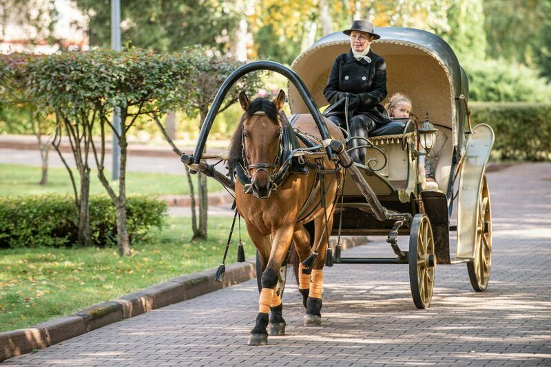 - катание в экипаже (санях) — 300 ₽ / 5 минут (взрослые), 200 ₽ / 5 минут (дети до 12 лет);