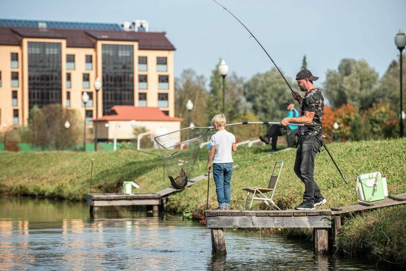 В Вашем распоряжении два огромных пруда, заселенных зеркальным карпом, щукой и форелью. Для удобства рыбаков вдоль линии берега установлены специальные деревянные настилы. На берегу водоемов имеются удобные беседки.