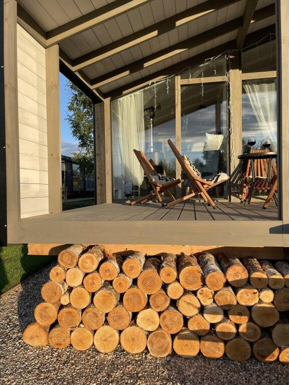 В коттеджах есть всё необходимое для отдыха. Есть полностью оборудованная всей необходимой техникой кухня: полноценный холодильник с морозильной камерой, духовой шкаф, посудомоечная машинка, варочная панель, кофемашина с зерновым кофе, чай, оливковое и подсолнечное масло, соль, сахар, специи всегда с запасом. В доме установлен кондиционер, каминная печь, в просторном санузле душевая кабина, стиральная машинка, тёплый пол. Имеется вся необходимая посуда, постельное бельё, полотенца разных размеров, в том числе пляжные, косметические принадлежности, фен, утюг.