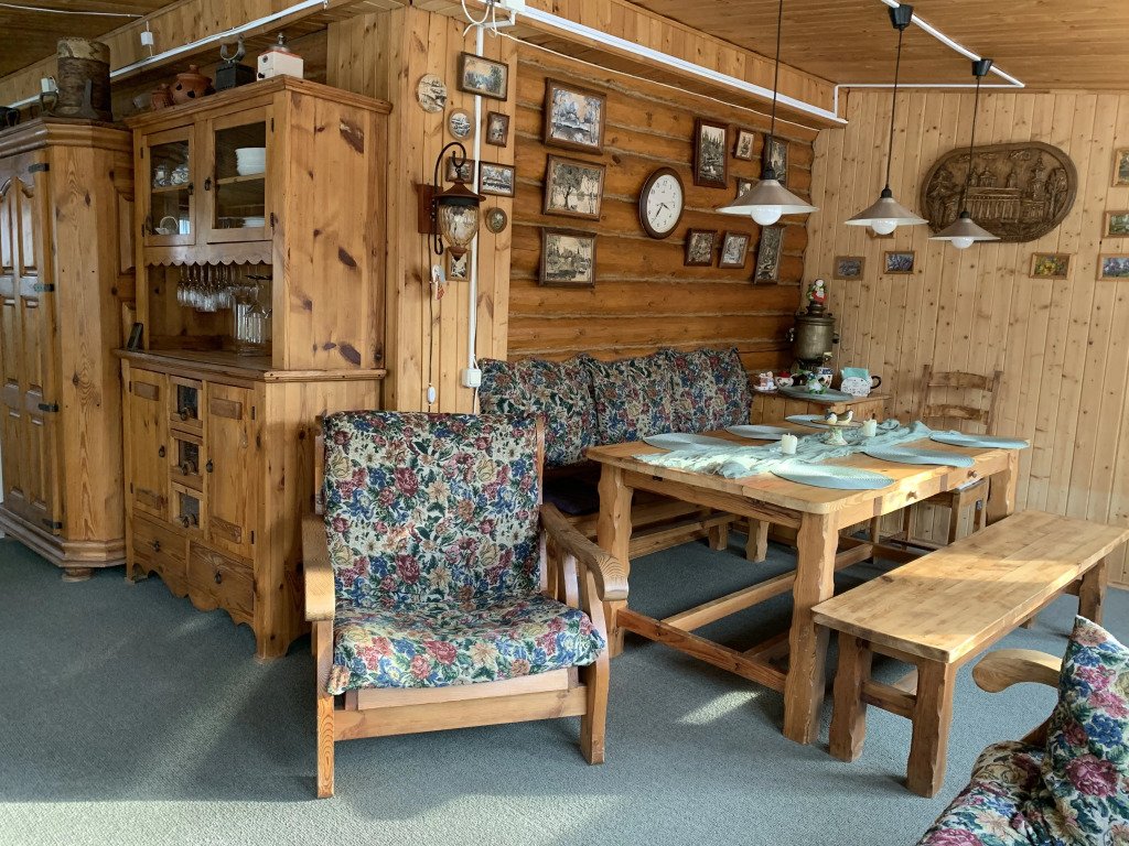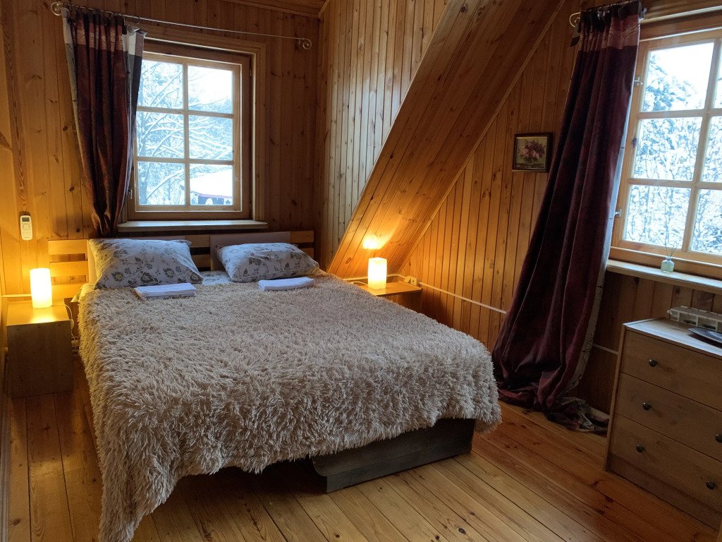 На первом этаже дома находится спальня, кухня с зоной для завтрака и гостиная со столом на 10 человек, диванами и телевизором, санузел с душевой кабиной, сауна, комната отдыха после сауны с баром, телевизором и настольными играми: нарды, шахматы, карты, покер, эрудит, монополия. На втором этаже находятся 2 спальни и санузел второго этажа.