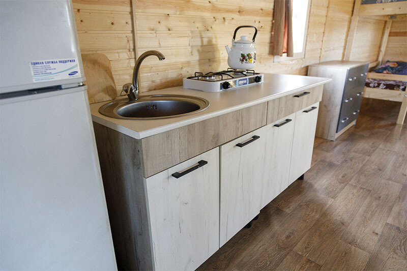 Домики полностью оборудованы всем необходимым для проживания. Вам будет предоставлена общая комната отдыха, кухня, душевая кабина с горячей и холодной водой, а также туалет.