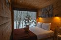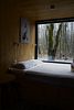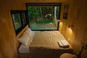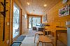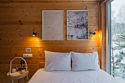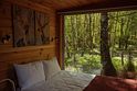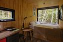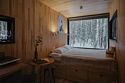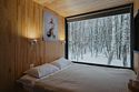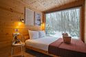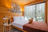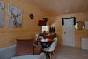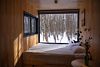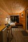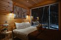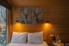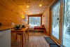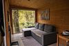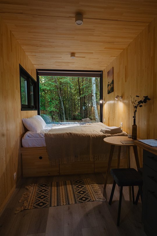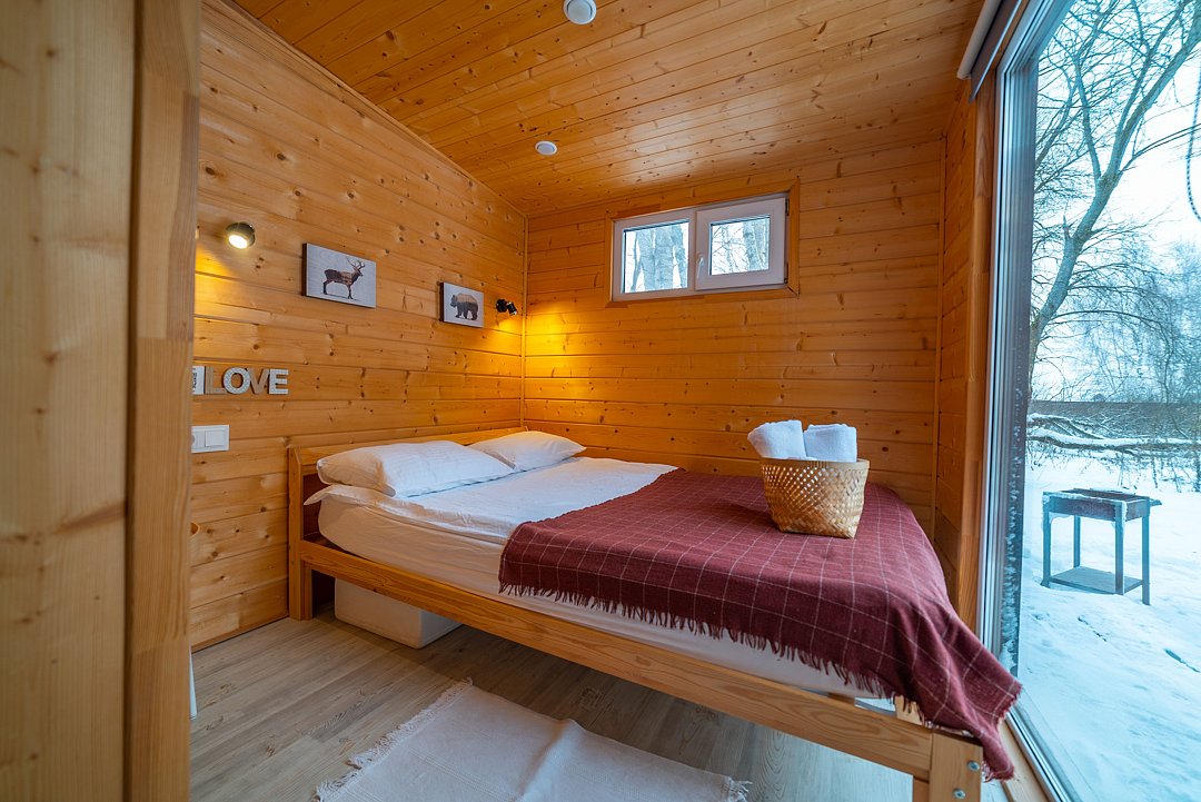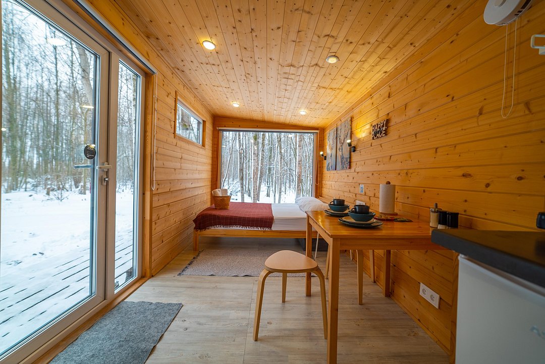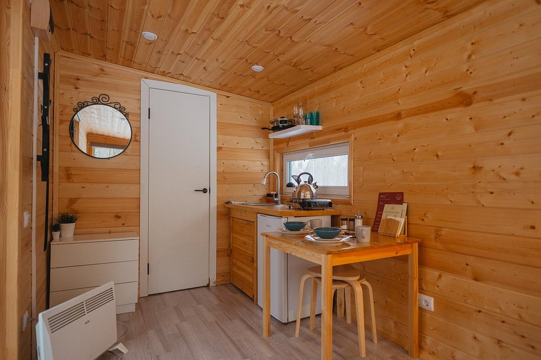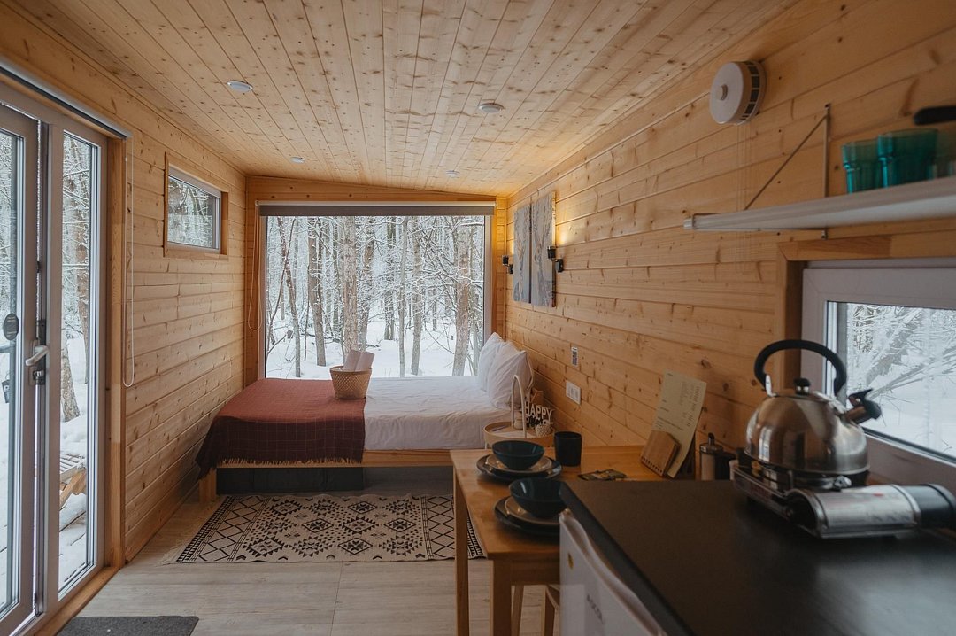 Внутри полноценная двуспальная кровать, камин, холодильник, обеденный стол со стульями и обогреватель, чтобы всегда было тепло.